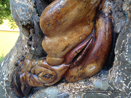 Leslie writes: “While taking a pleasant stroll across the floating bridge into Punda, I spotted something that stopped me in my tracks. A series of erotic sculptures carved into trees, right in front of the historic Governor’s House!” (Artist is Mac Alberto, see #858)