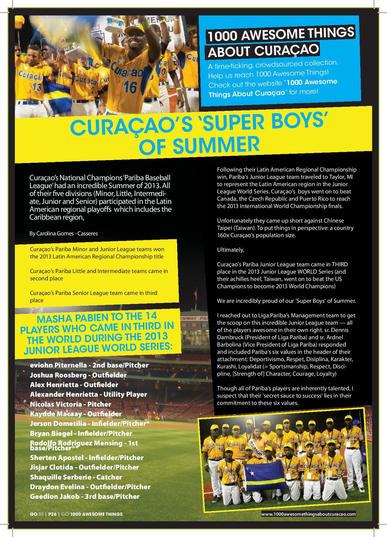 #667. Curaçao’s ‘Super Boys’ of Summer featured in Go Weekly magazine.
